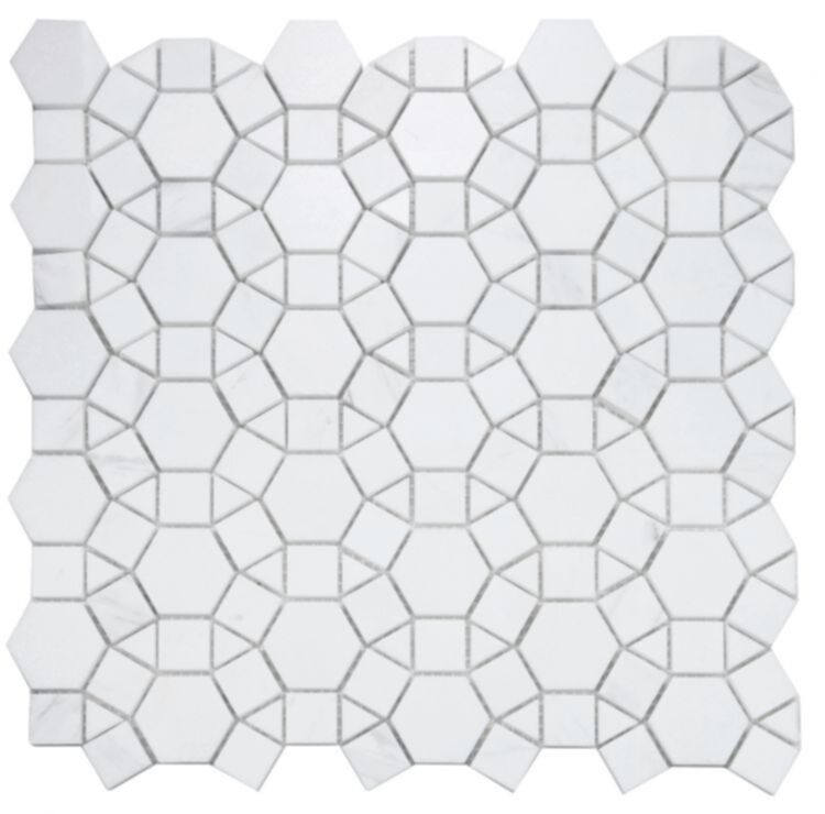 Aether Pure White 11.5×12 – Mixed Volakas and Thassos marble mosaic. This Mosaic comes in a Polished finish.